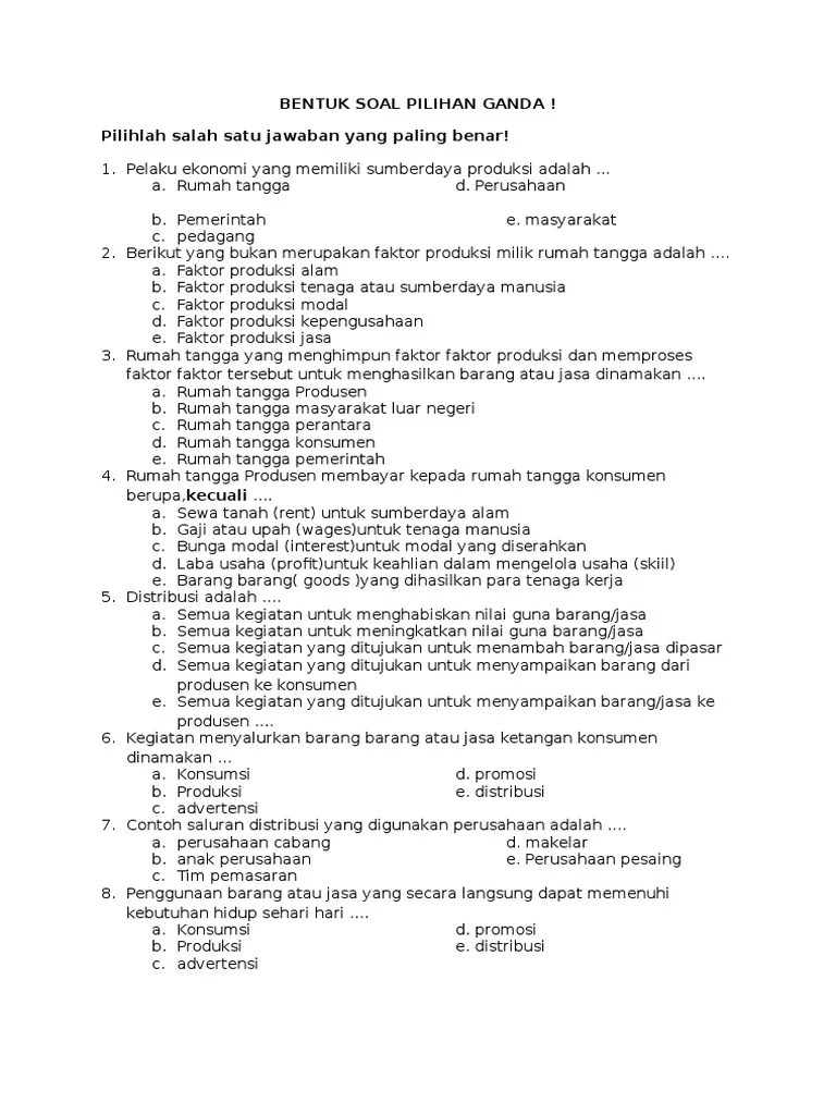 Soal Ekonomi Pilihan Ganda Kelas 7 : Soal pilihan ganda ekonomi kelas 11 bab 7 perpajakan ~ sekolahmuonline.com.pembaca sekolahmuonline, berikut ini sekolahmuonline sajikan contoh soal pilihan ganda atau multiple choice mata pelajaran ekonomi kelas 11 bab 7 yang membahas tentang perpajakan lengkap dengan kunci jawaban dan pembahasannya.. Soal ips kelas 7 tentang kegiatan pokok ekonomi. Pilih salah satu jawaban yang paling tepat. Salah satu cara menguasai bahasa inggris yaitu dengan berlatih, apakah sahabat sbi juga sering berlatih mengerjakan soal? 4 responses to soal ips kelas 7 smp bab kegiatan pokok ekonomi. Petani bekerja di ladang setiap hari d.